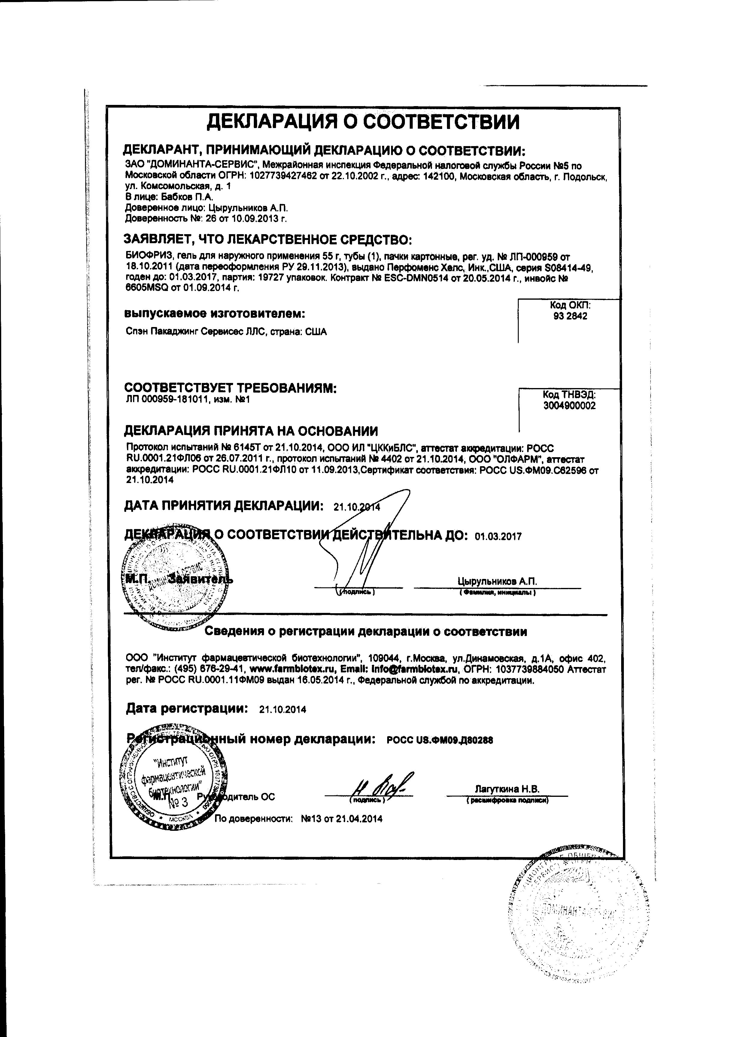 Инструкция Биофриз