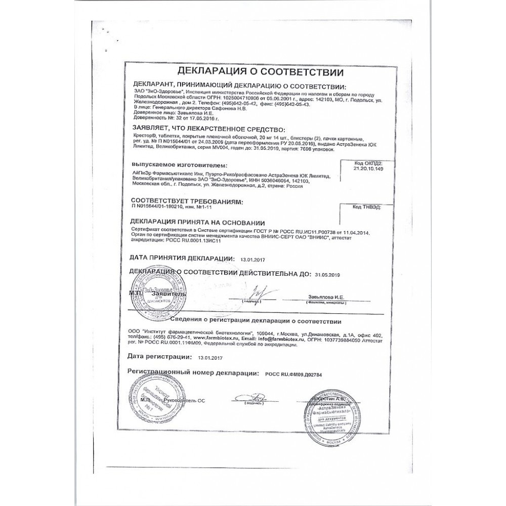 Прежде чем купить Крестор 20мг в ближайшей аптеке, нужно обязательно проконсультироваться с врачом. Самолечение опасно для Вашего здоровья.