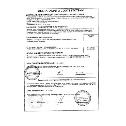 ? Доступные цены на спрей Изокет 1,25мг/доза 150 доз 20мл.
