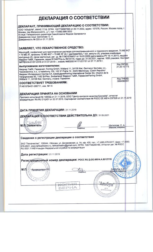 См. также: Меногон пор. лиоф. для ин. 75МЕ №5.