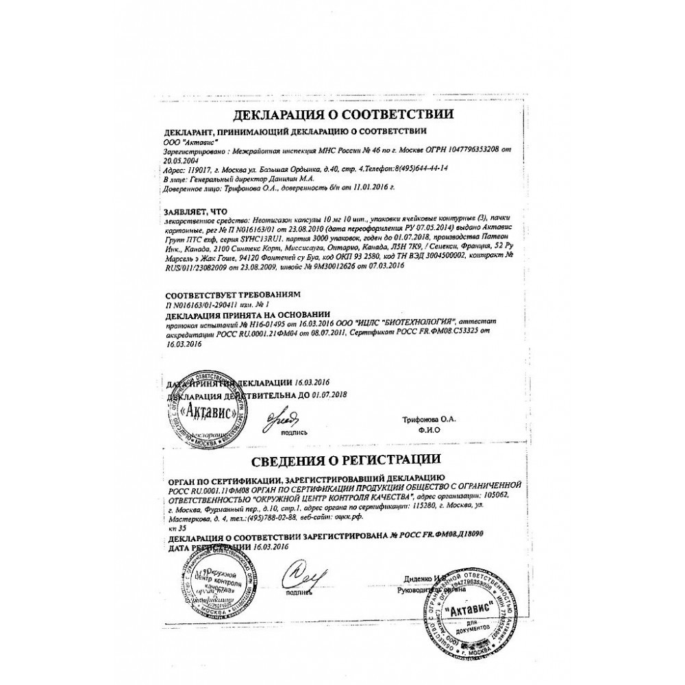 Прежде чем купить Неотигазон 10мг в ближайшей аптеке, нужно обязательно проконсультироваться с врачом. Самолечение опасно для Вашего здоровья.