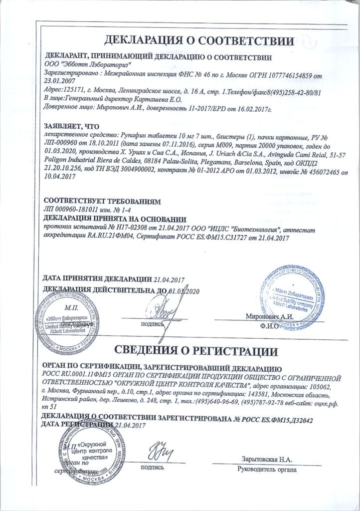 Инструкция Рупафин