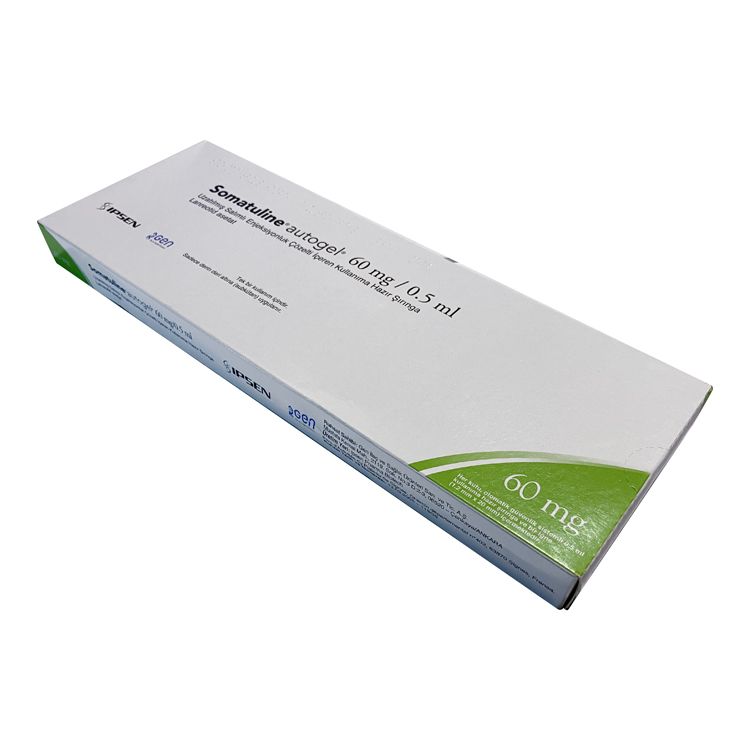 Соматулин Аутожель представлен в виде преднаполненного шприца с гелем для подкожного введения с пролонгированным действием. Препарат имеет вязкую консистенцию, его раствор перенасыщен и может варьироваться от белого до светло-желтого цвета. Один шприц содержит 0,5 мл раствора с активным компонентом в дозировке 60 мг.