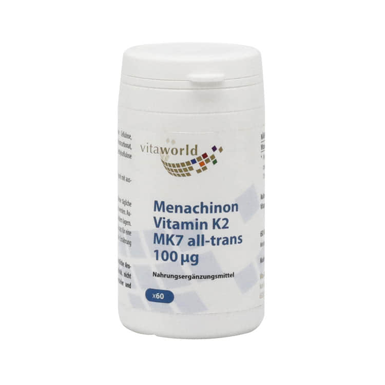 Витамин К2 (Менахинон 7) — жирорастворимый витамин, необходимый организму для синтеза белков. Vitamin K2 играет важную роль в обмене веществ, в костях и соединительной ткани, в работе почек, участвует в усвоении кальция и обеспечивает взаимодействие кальция и витамина D.